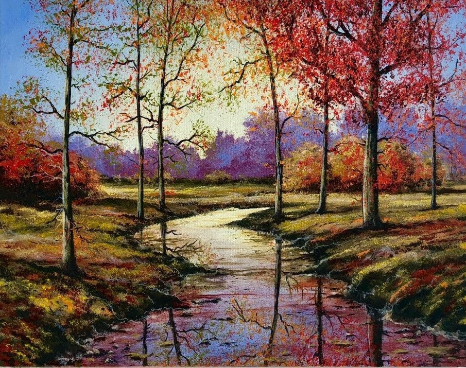 Autumn Forest Landscape- Handpainted - 24in X 36in